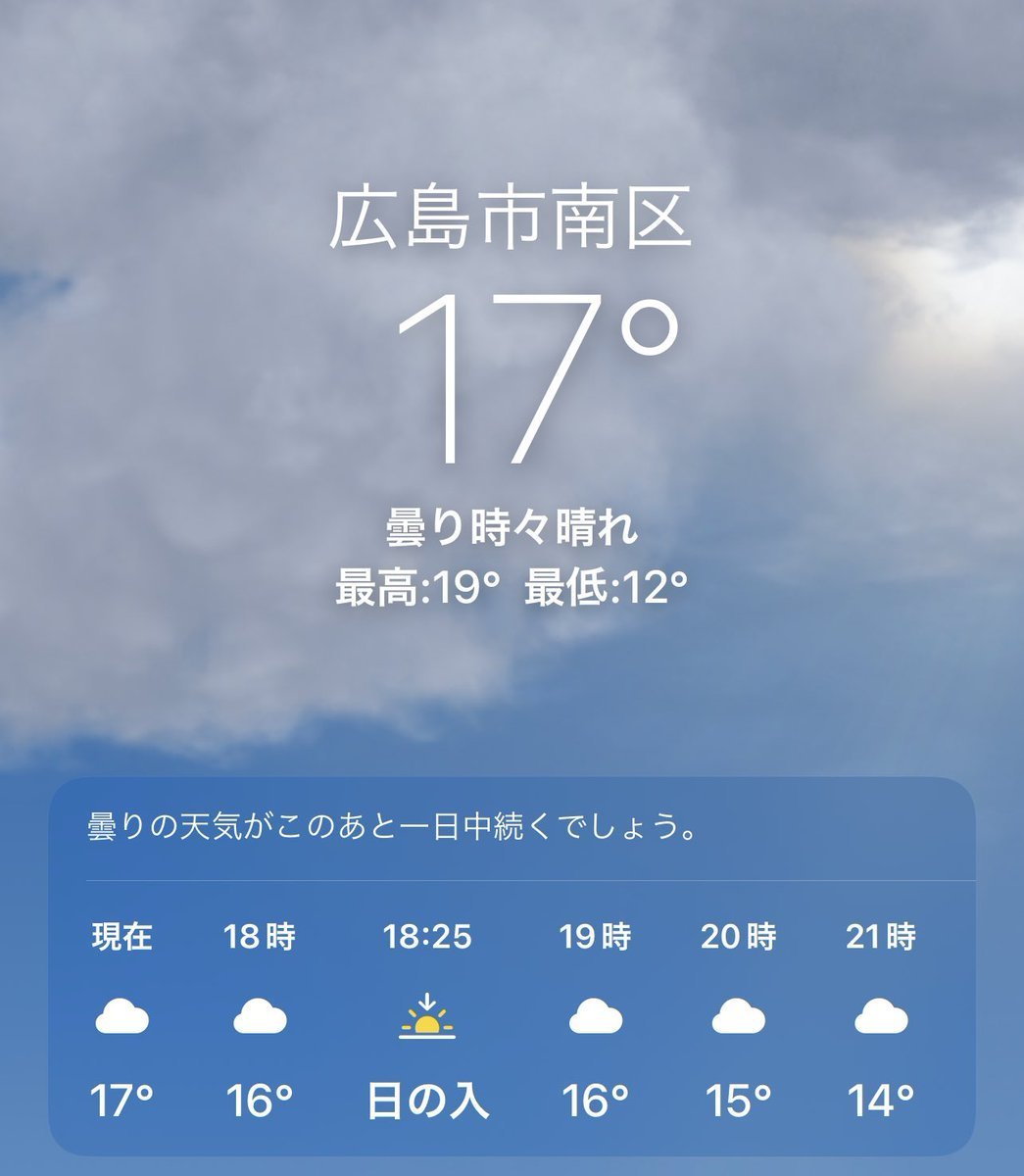3/25(土)広島市南区の天気は曇り。