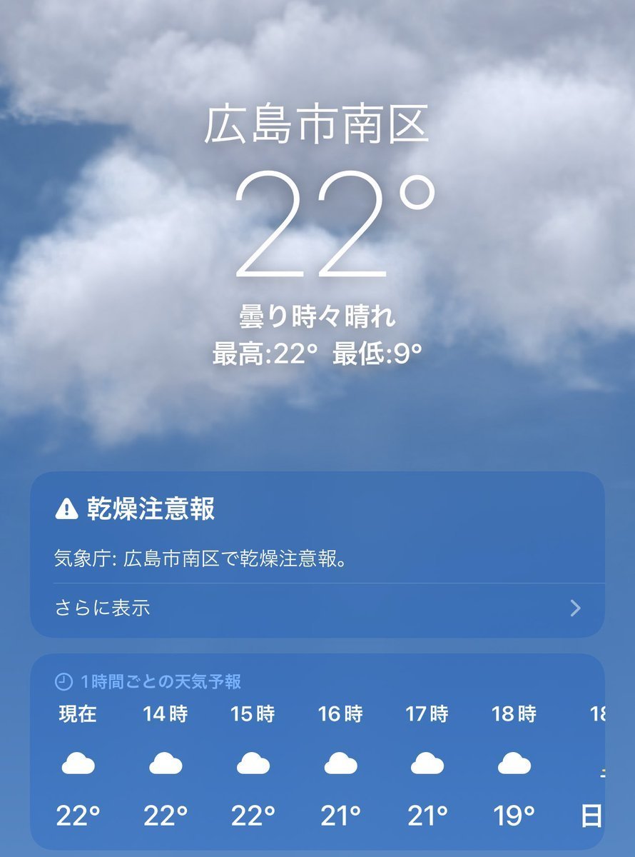 4/1(土)広島市南区の天気は晴れ☀️