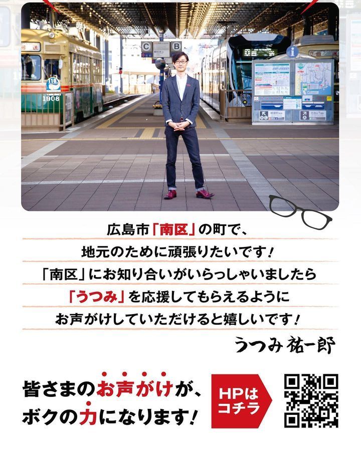 当店としては、地元宇品のイベントでもお世話になっており、地域の為にずっと頑張ってきておられる @utumi_yuu 候補を応援しております‼️