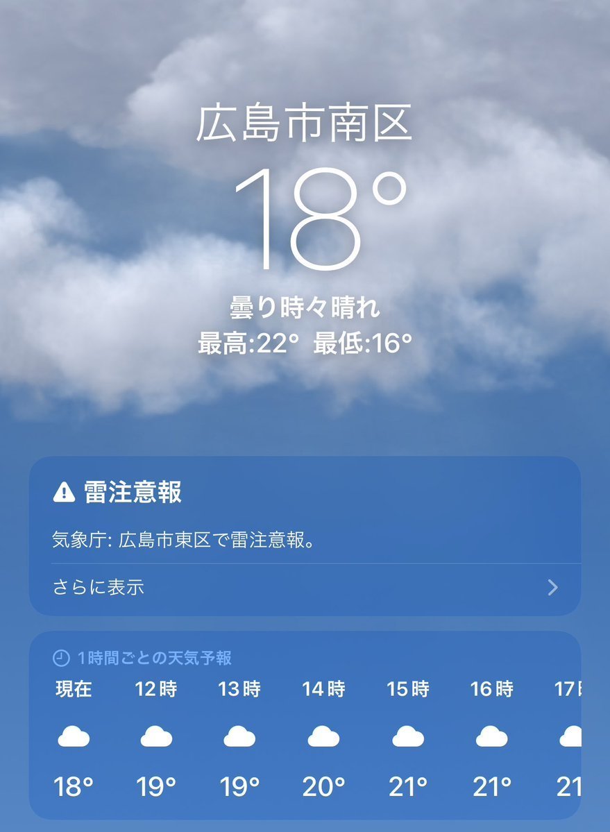 4/19(水)広島市南区の天気は曇り☁️