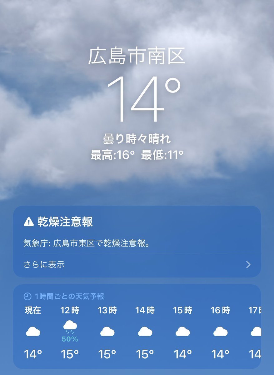 4/24(月)広島市南区の天気は曇り☁️